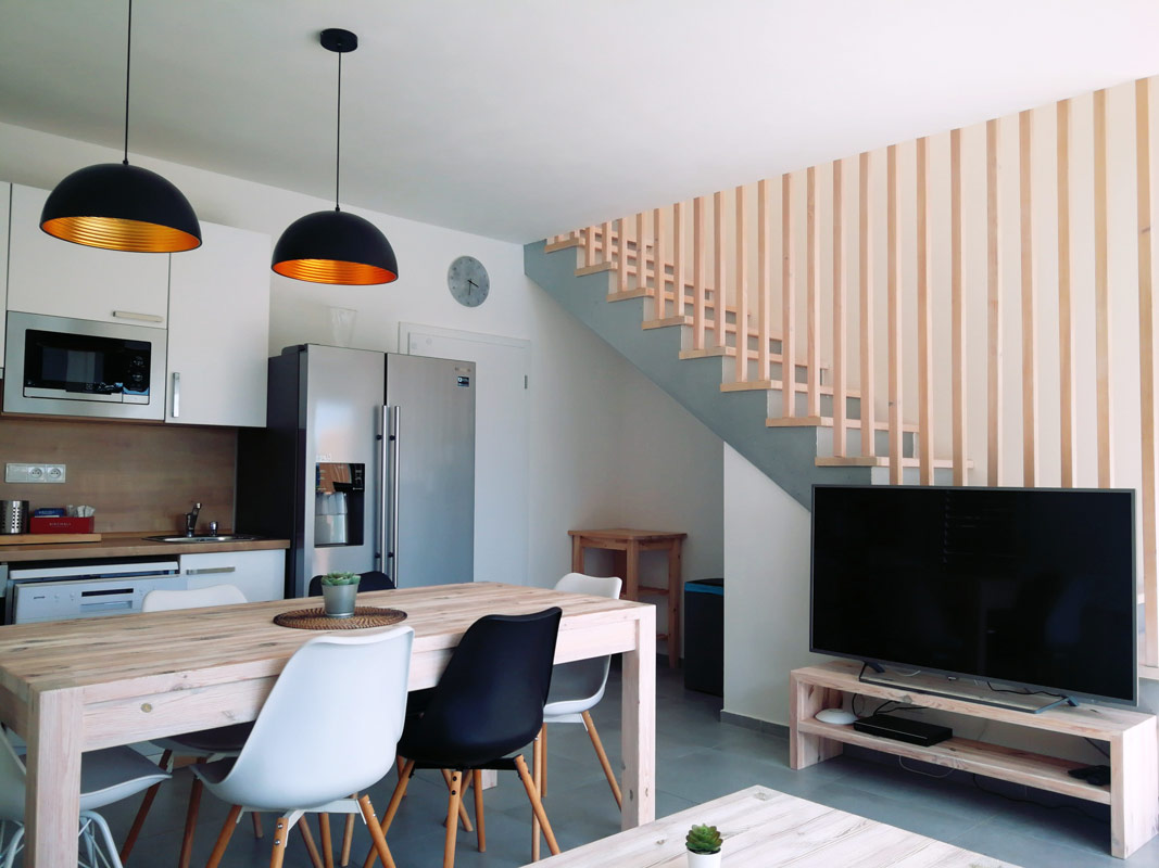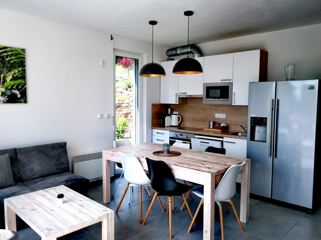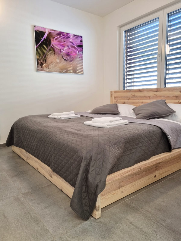 Hledáte-li menší apartmán, určený pro 4 lidi, prohlédněte si jednopodlažní apartmán A4 s celkovou vnitřní plochou 70 m2 a vlastním bazénem.